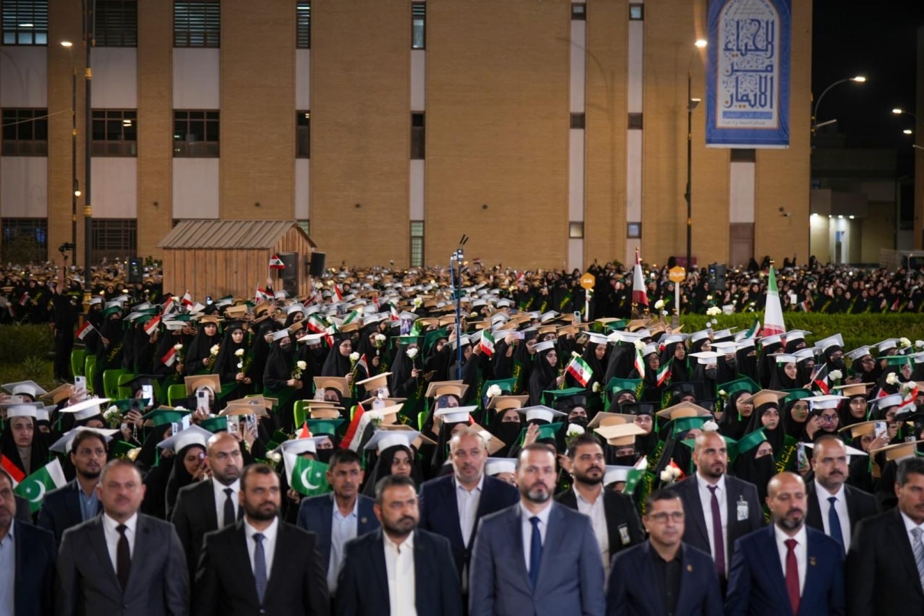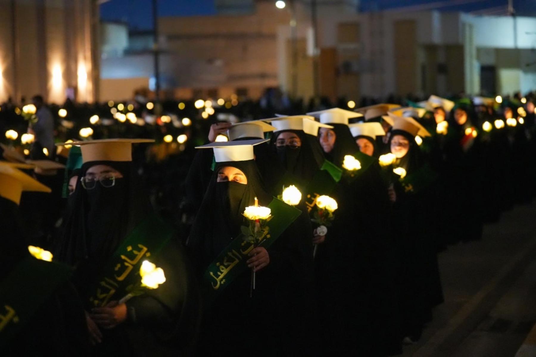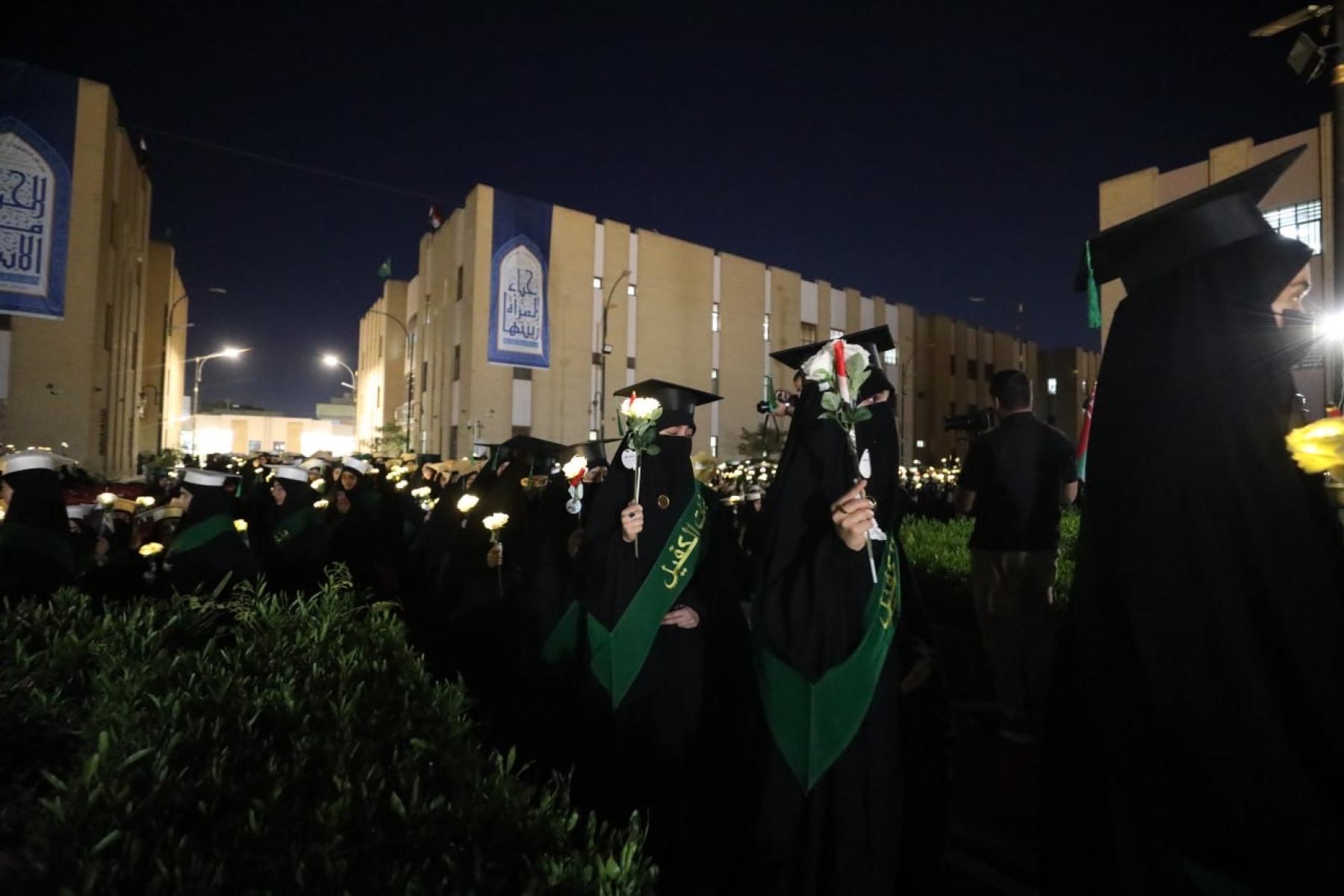بمشاركة أكثر من (5000) طالبة، انطلاق أبرز الفعاليات المسائية للحفل المركزي بتخرّج طالبات الجامعات العراقية والعربية والإسلامية في مجمّع العميد التربوي.