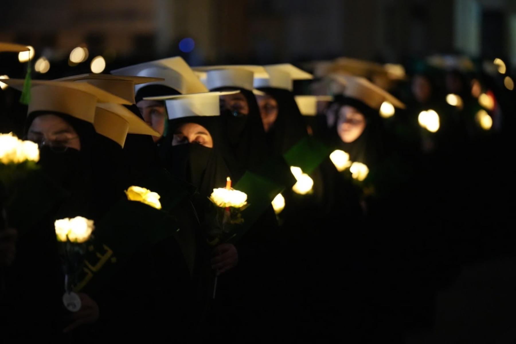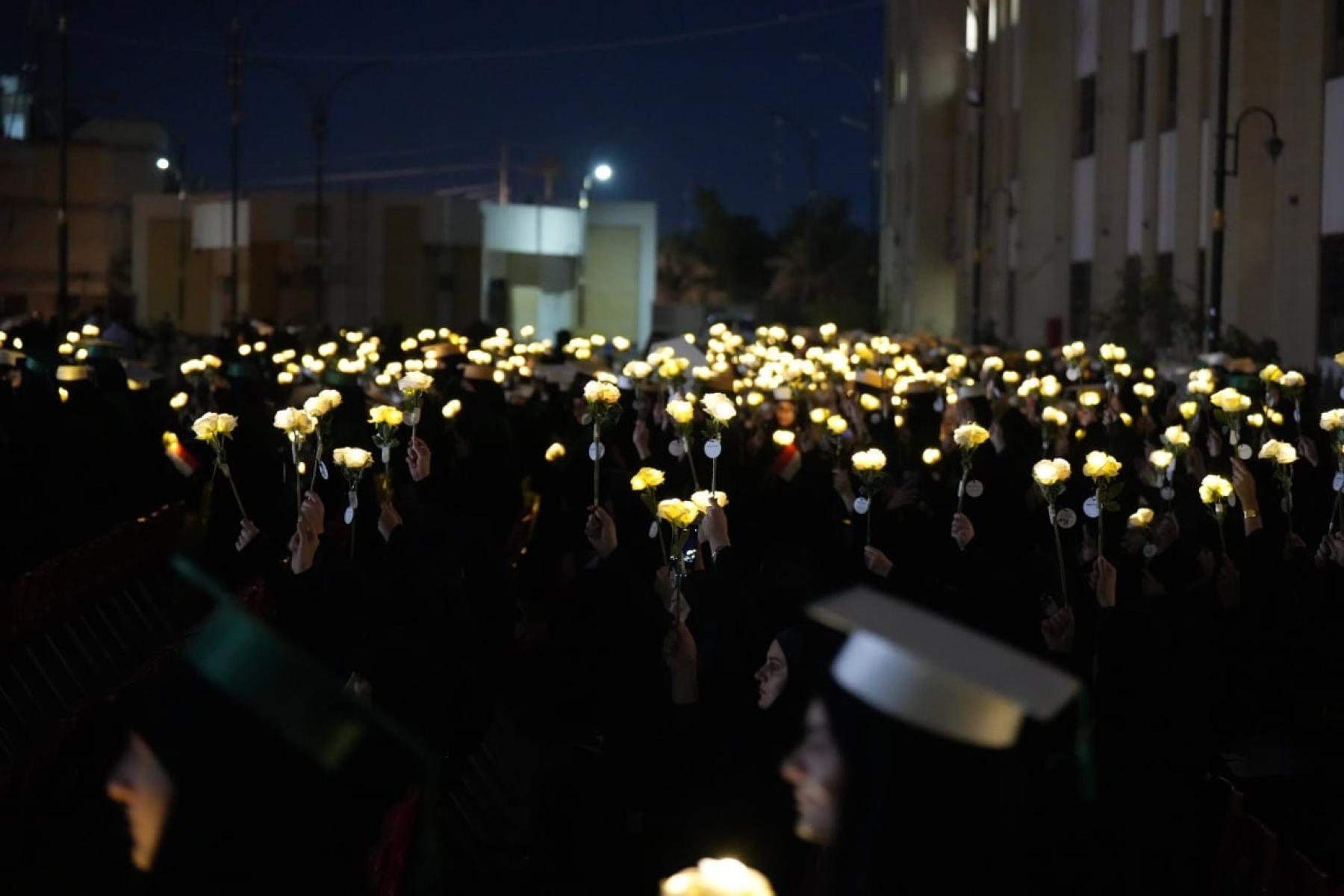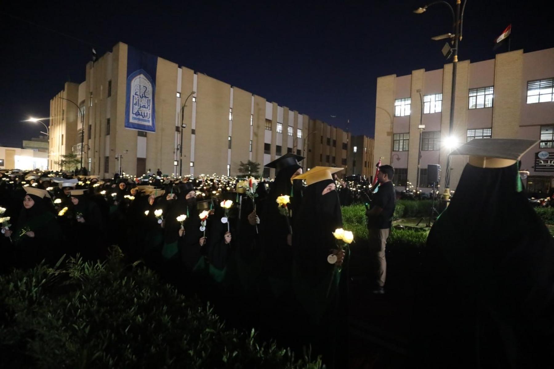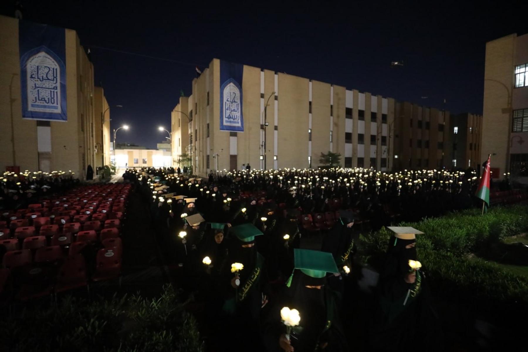بمشاركة أكثر من (5000) طالبة، انطلاق أبرز الفعاليات المسائية للحفل المركزي بتخرّج طالبات الجامعات العراقية والعربية والإسلامية في مجمّع العميد التربوي.