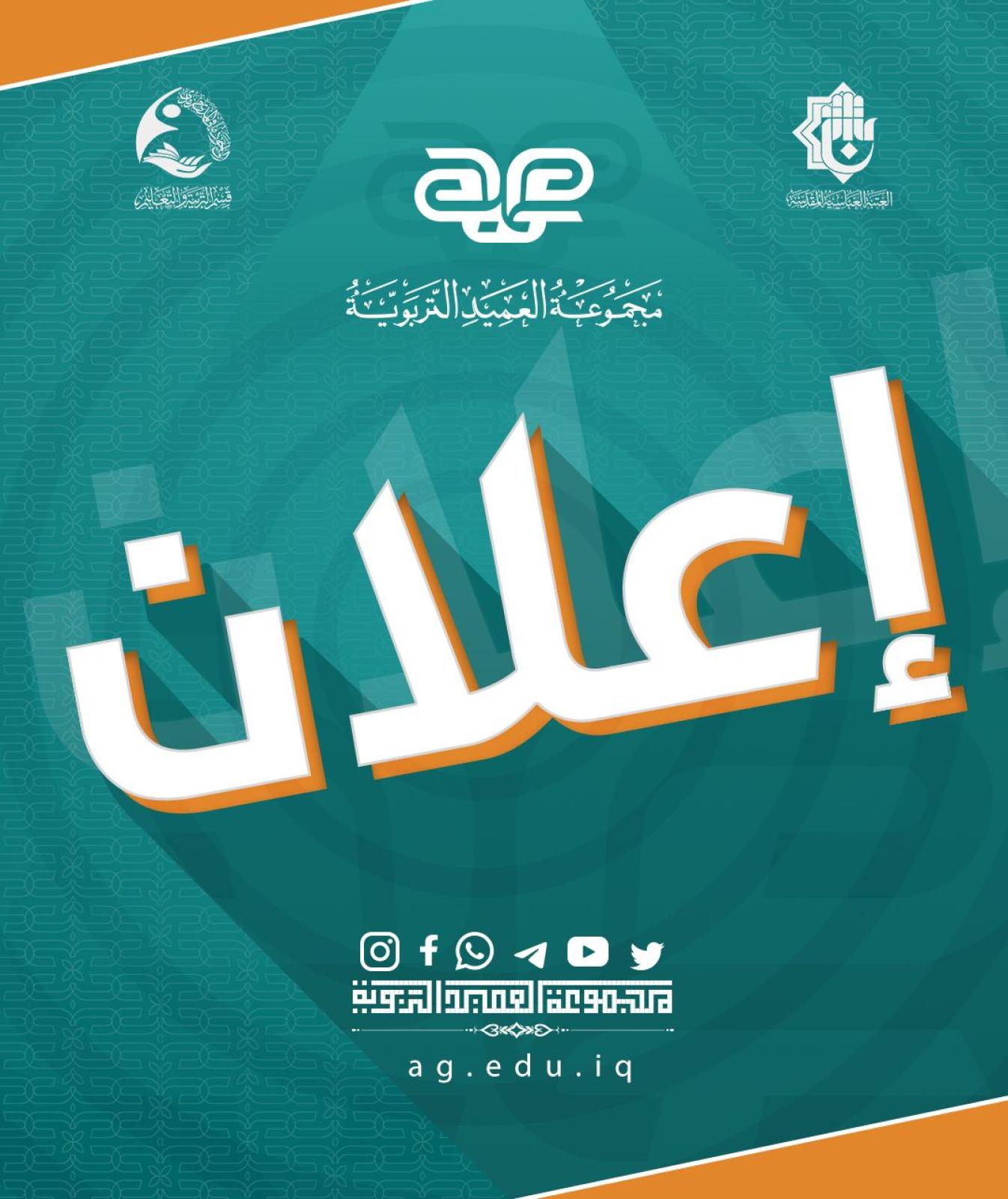إعــــــلان استنادًا إلى توجيهات مديرية تربية محافظة كربلاء المقدَّسة، تُعلِن مجموعة العميد التربويّة عن تعطيل الدوام الرسمي لأيام الأحد والاثنين والثلاثاء الموافقـة (9 – 10 – 11 / 11 / 2025م)، في جميع مدارس البنين والبنات ورياض الأطفال التابعة للمجموعة.