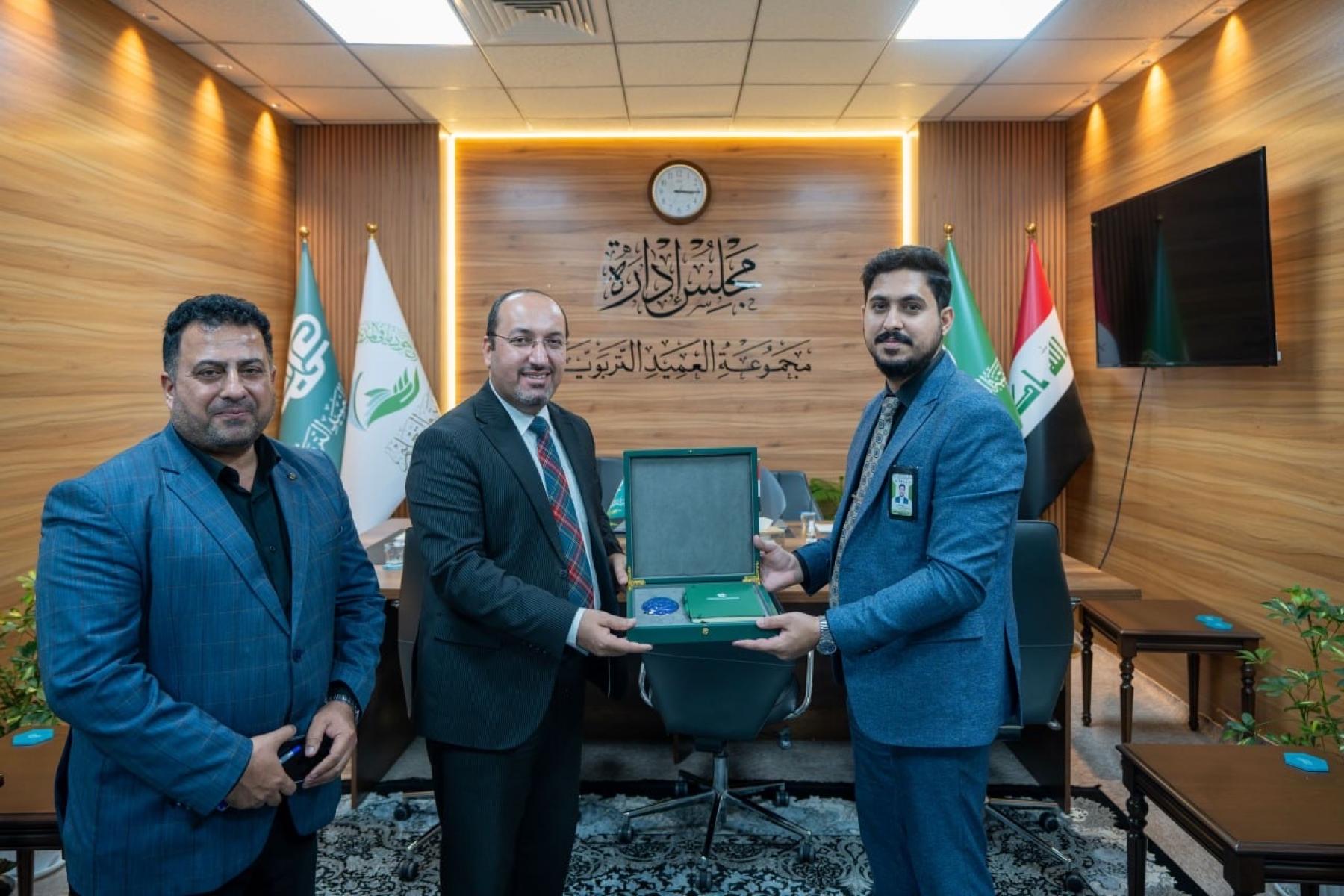 استقبلت مجموعة العميد التربوية وفداً رفيع المستوى من وزارة التربية العراقية، ضمّ مدير مكتب الوزير ومدير هيئة رعاية الموهوبين الدكتور سعد الجميلي، والمشرف التربوي الأستاذ المساعد وسام الخزاعي، في زيارة رسمية للاطلاع على منظومتها التعليمية والبنى التحتية المتقدمة. وكان في استقبال الوفد المعاون الإداري لرئيس قسم التربية والتعليم المدرس المساعد يوسف الطائي، ومسؤول شعبة تقنية المعلومات الأستاذ مصطفى محمود شاكر.