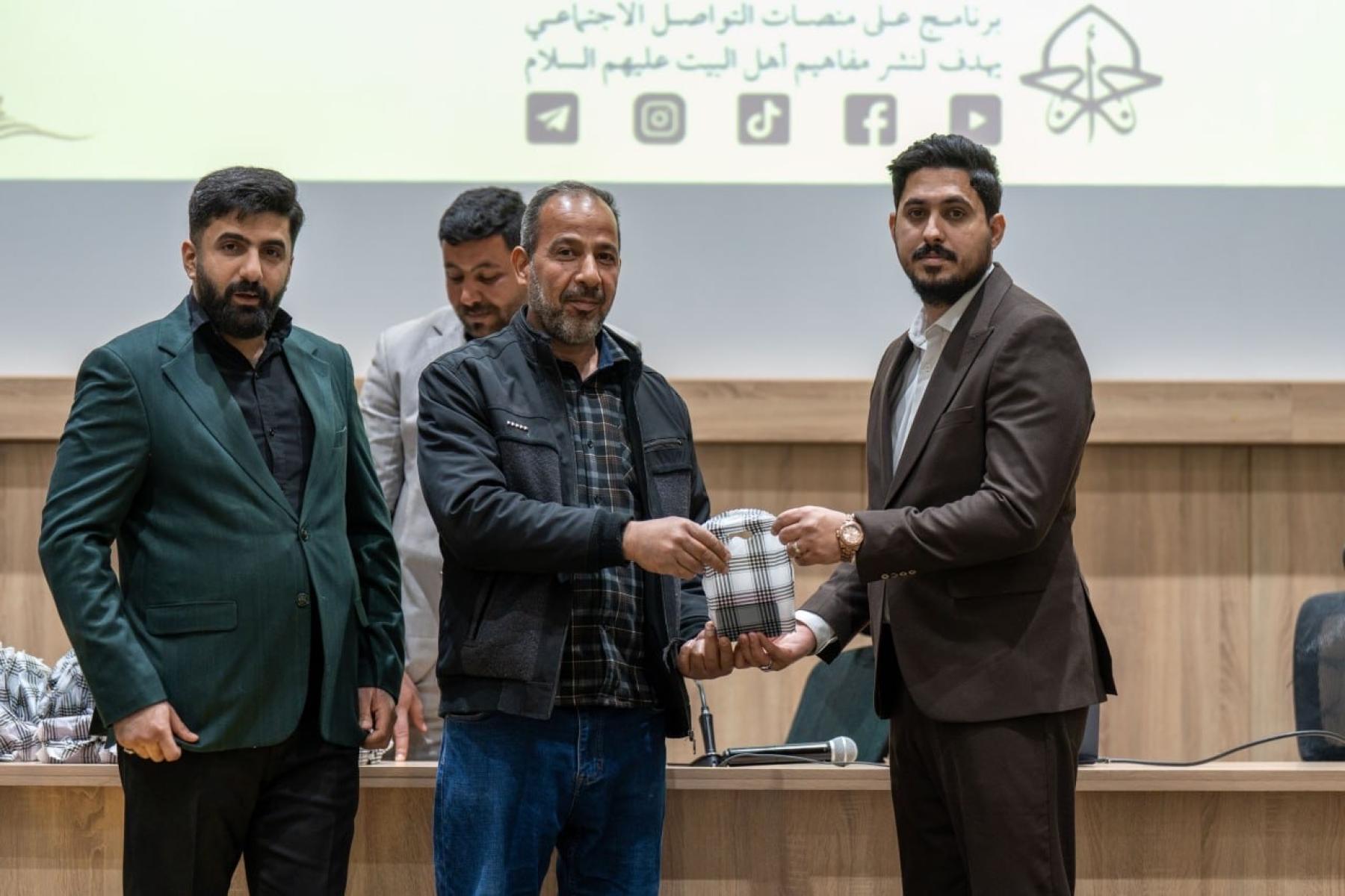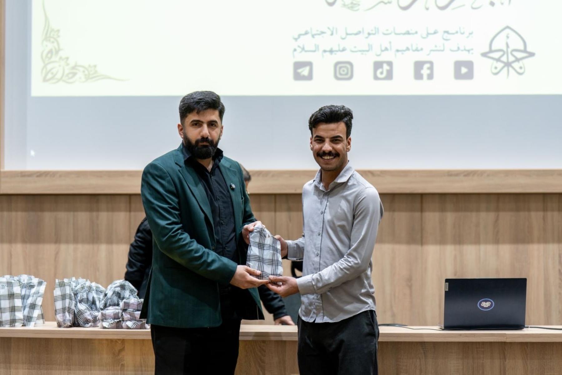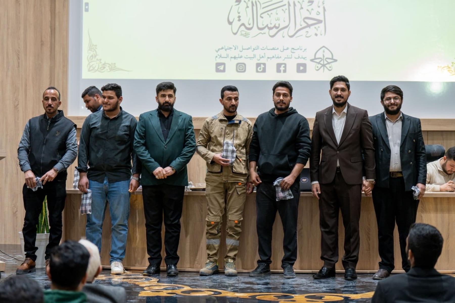 وتضمنت الفعالية إجراء مسابقة معرفية للمشاركين، تناولت مجموعة من الأسئلة الدينية والثقافية المرتبطة بمحاور برنامج أجر الرسالة، الذي يتضمن تقديم محاضرات دينية وتوعوية وتثقيفية تسهم في ترسيخ القيم الأخلاقية والمبادئ الإسلامية المستلهمة من سيرة النبي الأكرم (صلى الله عليه وآله) وأهل بيته الأطهار (عليهم السلام).