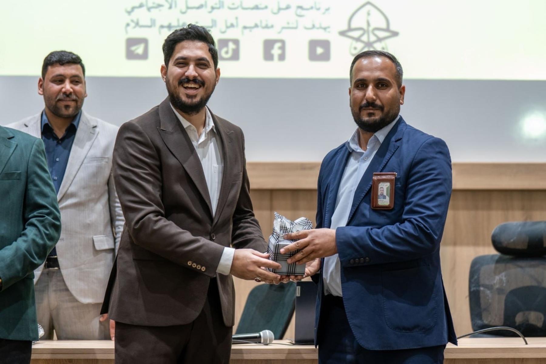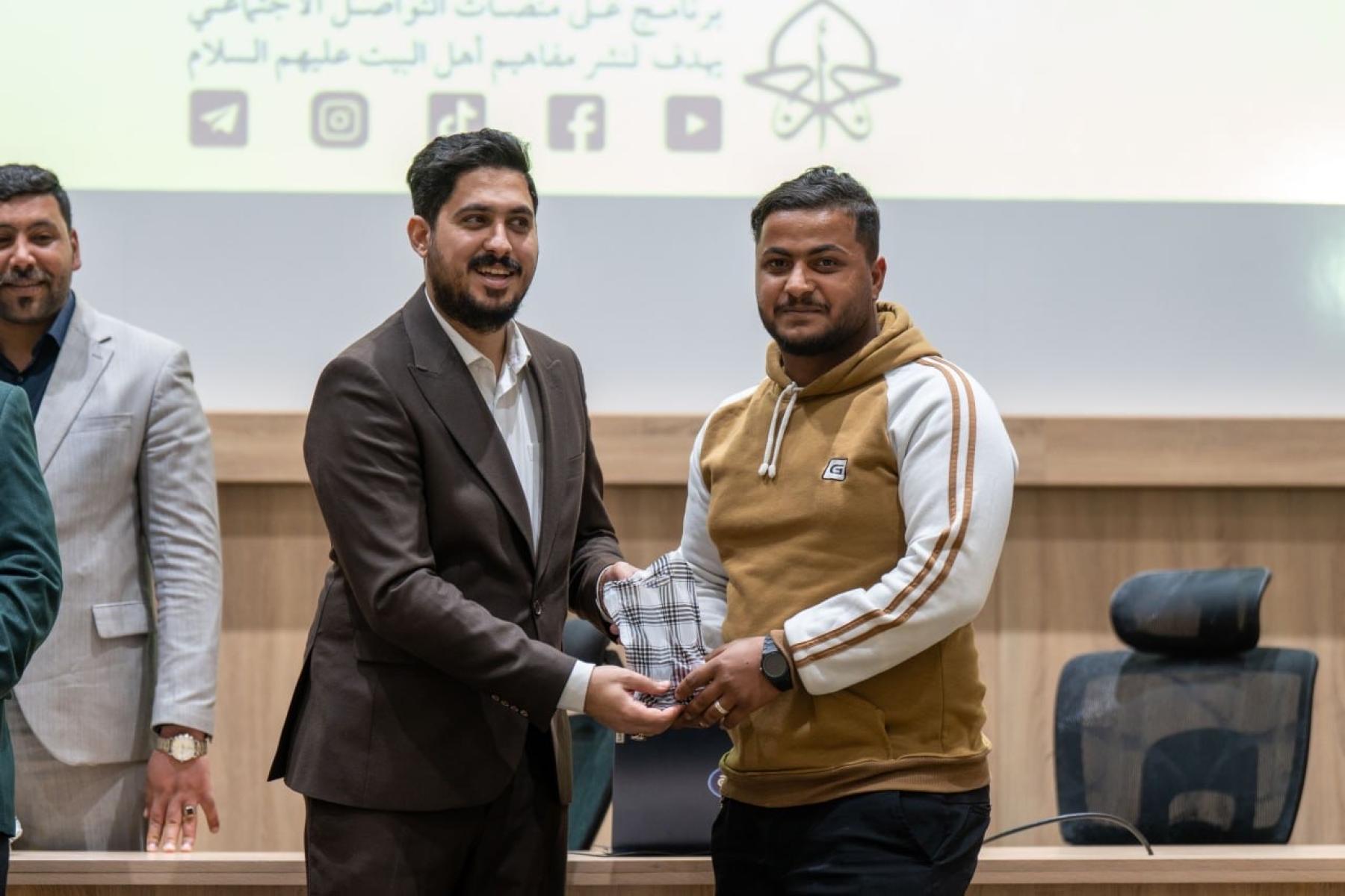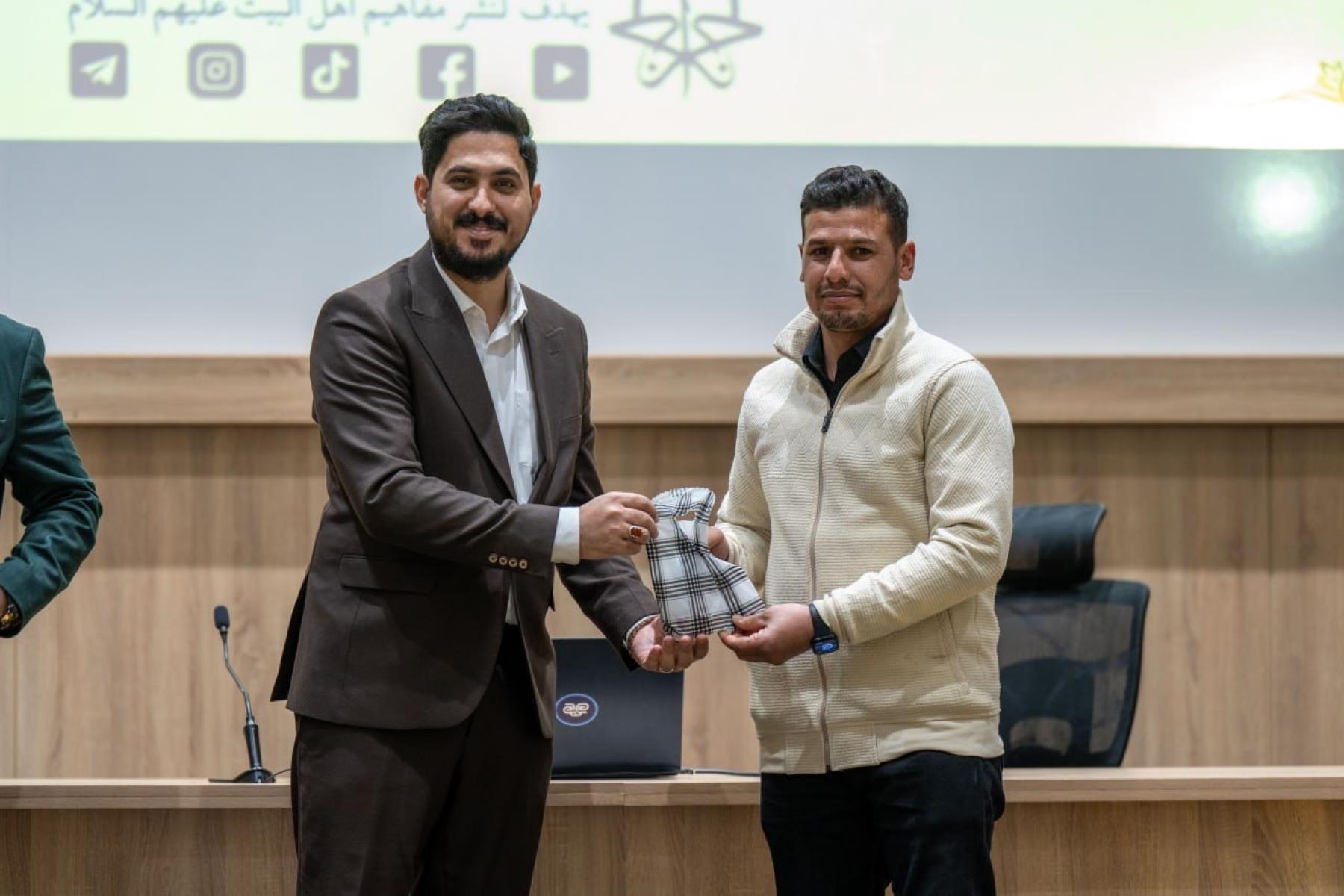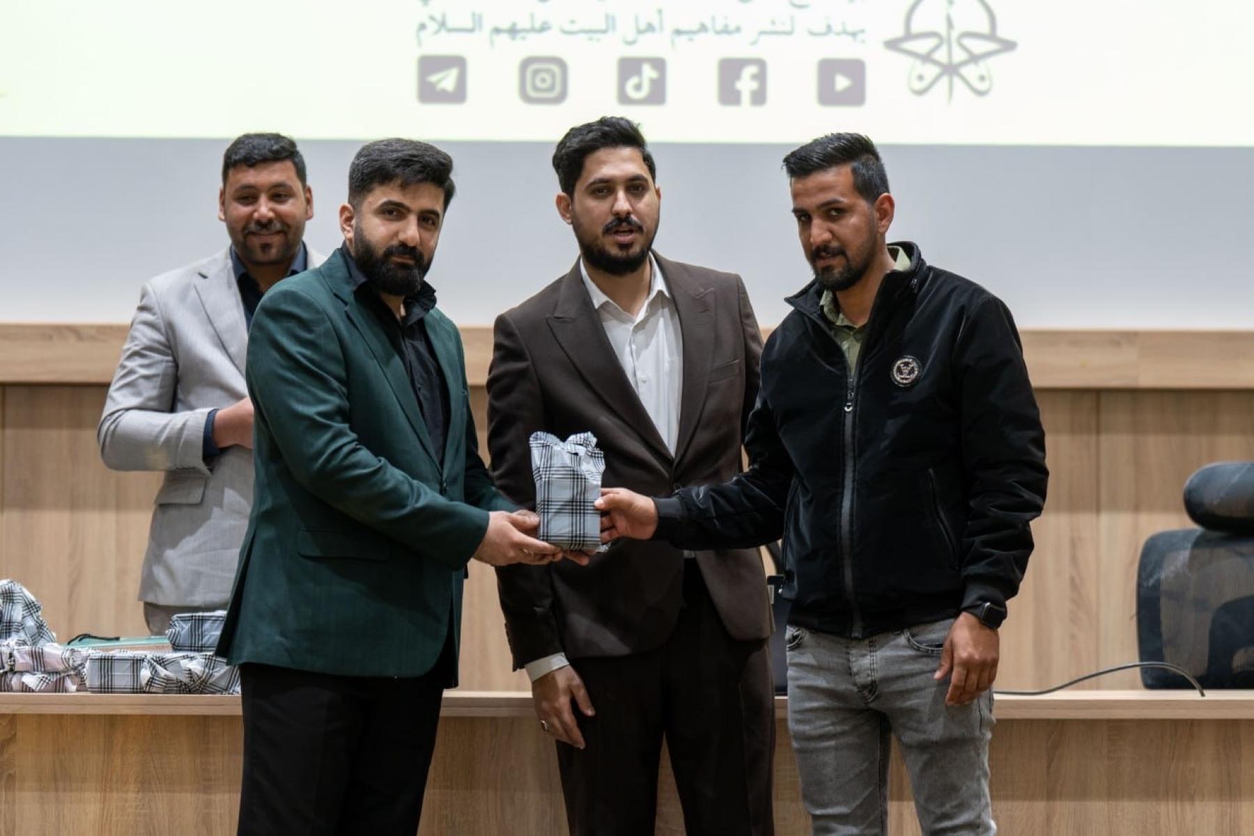 وتضمنت الفعالية إجراء مسابقة معرفية للمشاركين، تناولت مجموعة من الأسئلة الدينية والثقافية المرتبطة بمحاور برنامج أجر الرسالة، الذي يتضمن تقديم محاضرات دينية وتوعوية وتثقيفية تسهم في ترسيخ القيم الأخلاقية والمبادئ الإسلامية المستلهمة من سيرة النبي الأكرم (صلى الله عليه وآله) وأهل بيته الأطهار (عليهم السلام).