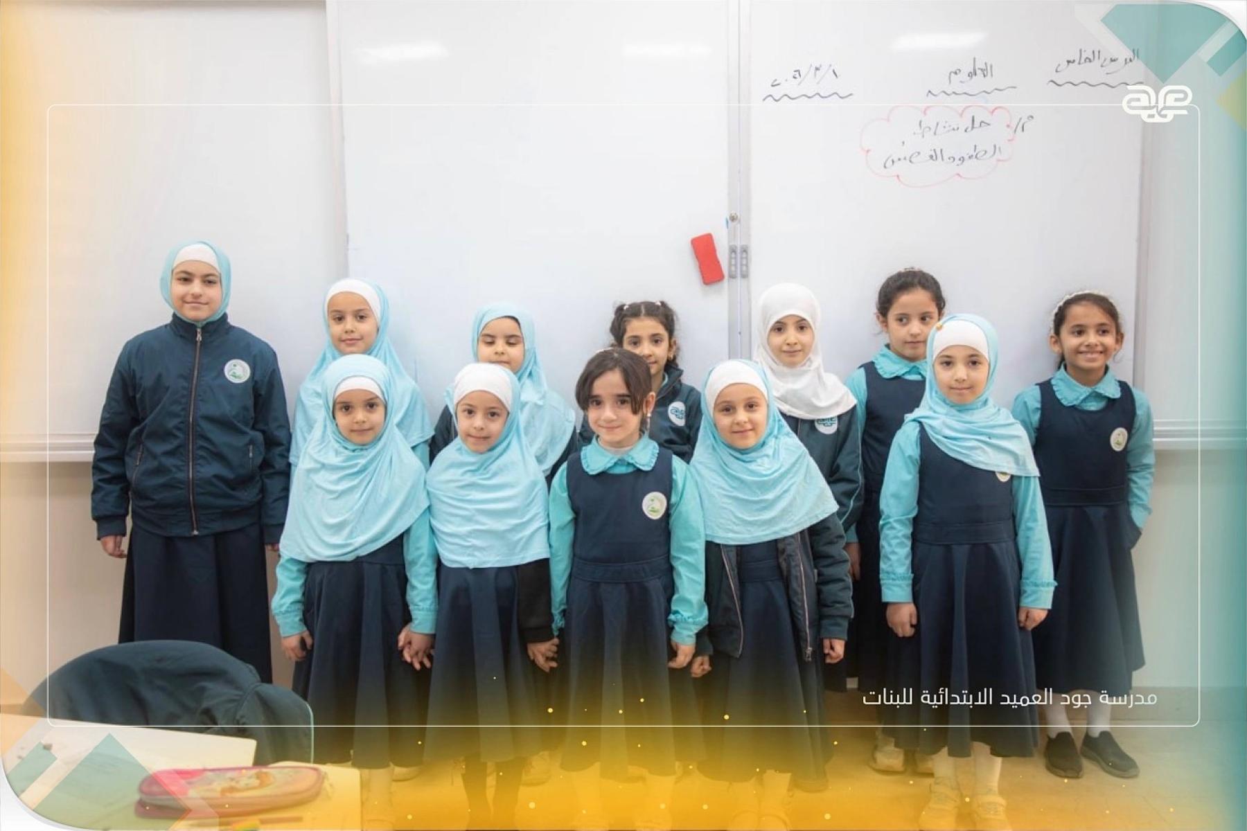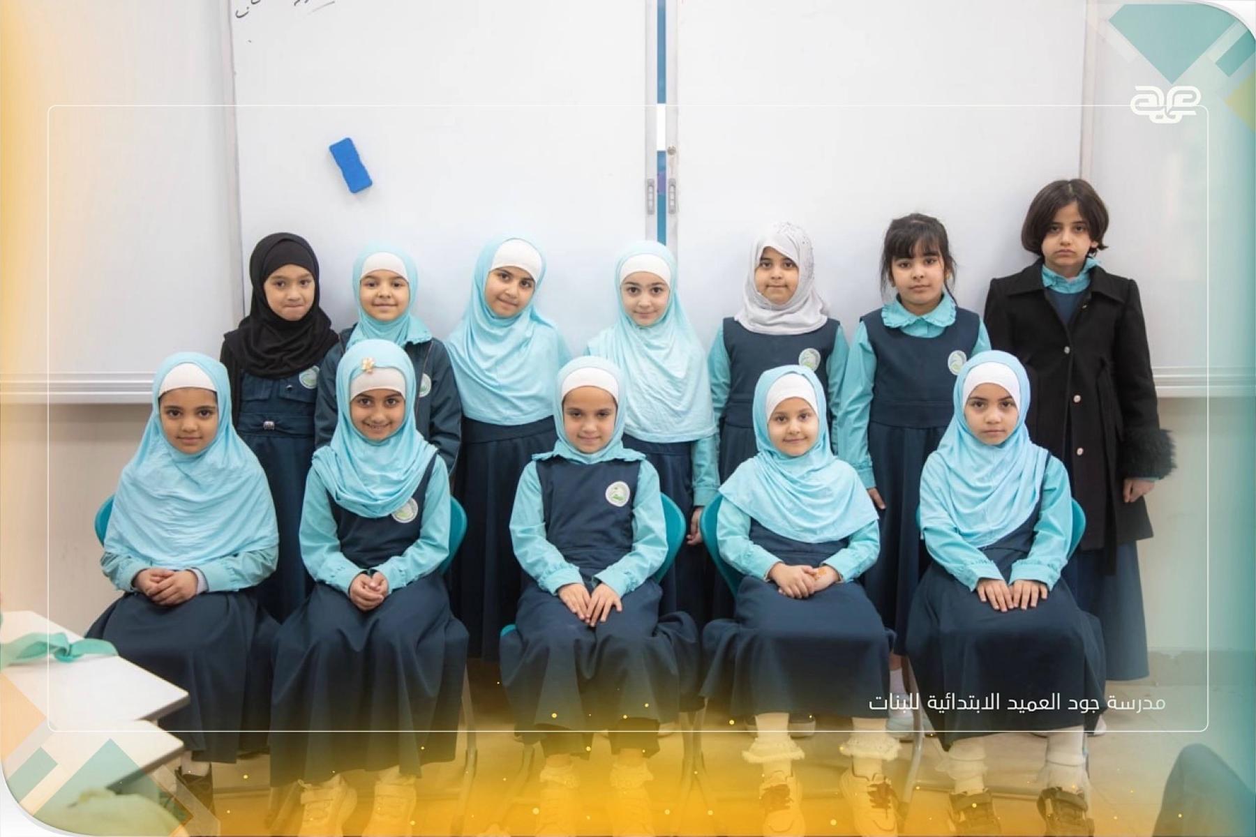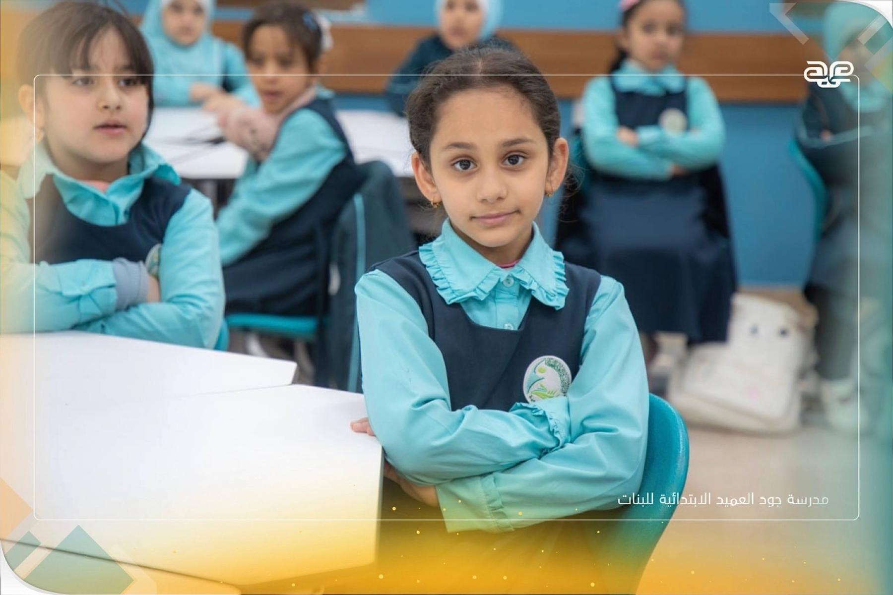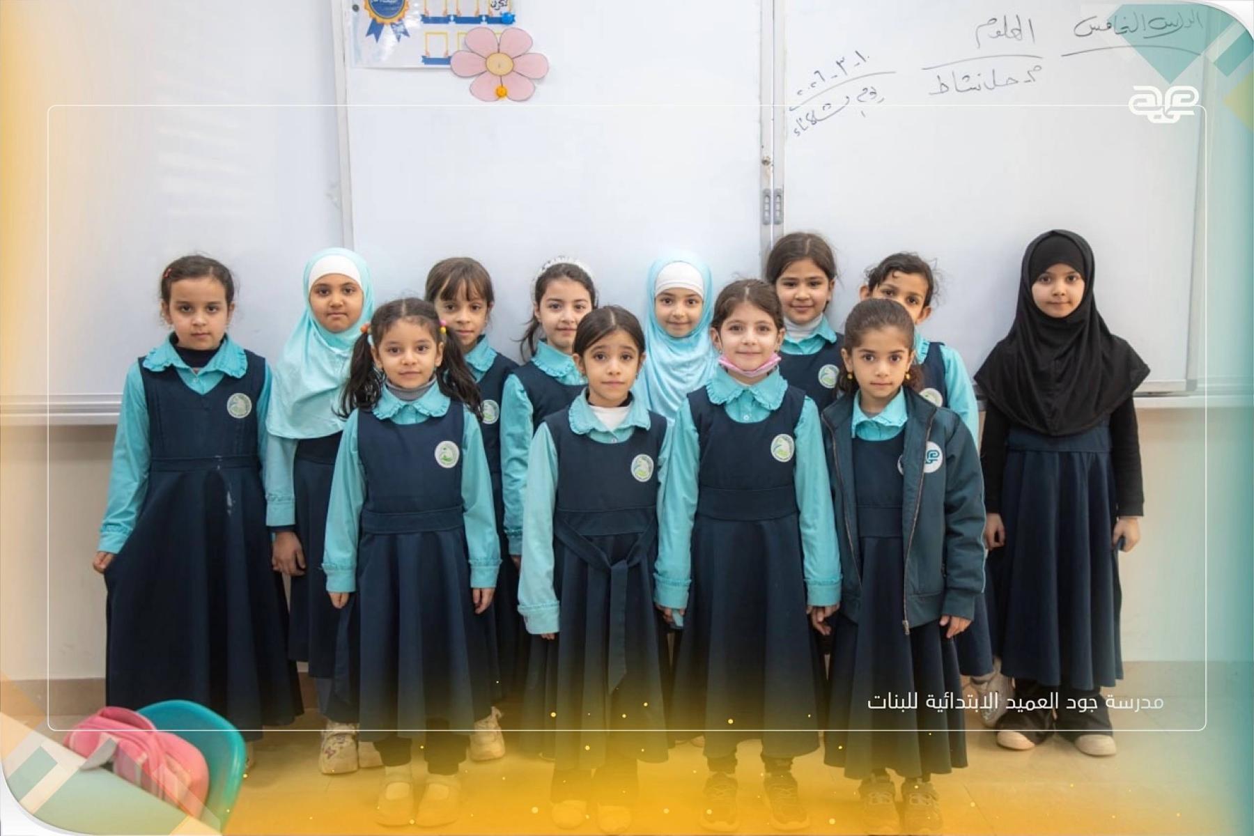 متعلمات مدرسة جود العميد الابتدائية للبنات في إطلالة تعليمية مميزة تجمع بين العلم والوعي، في يومٍ دراسي يفيض بالبسمة والنجاح وروح المثابرة.