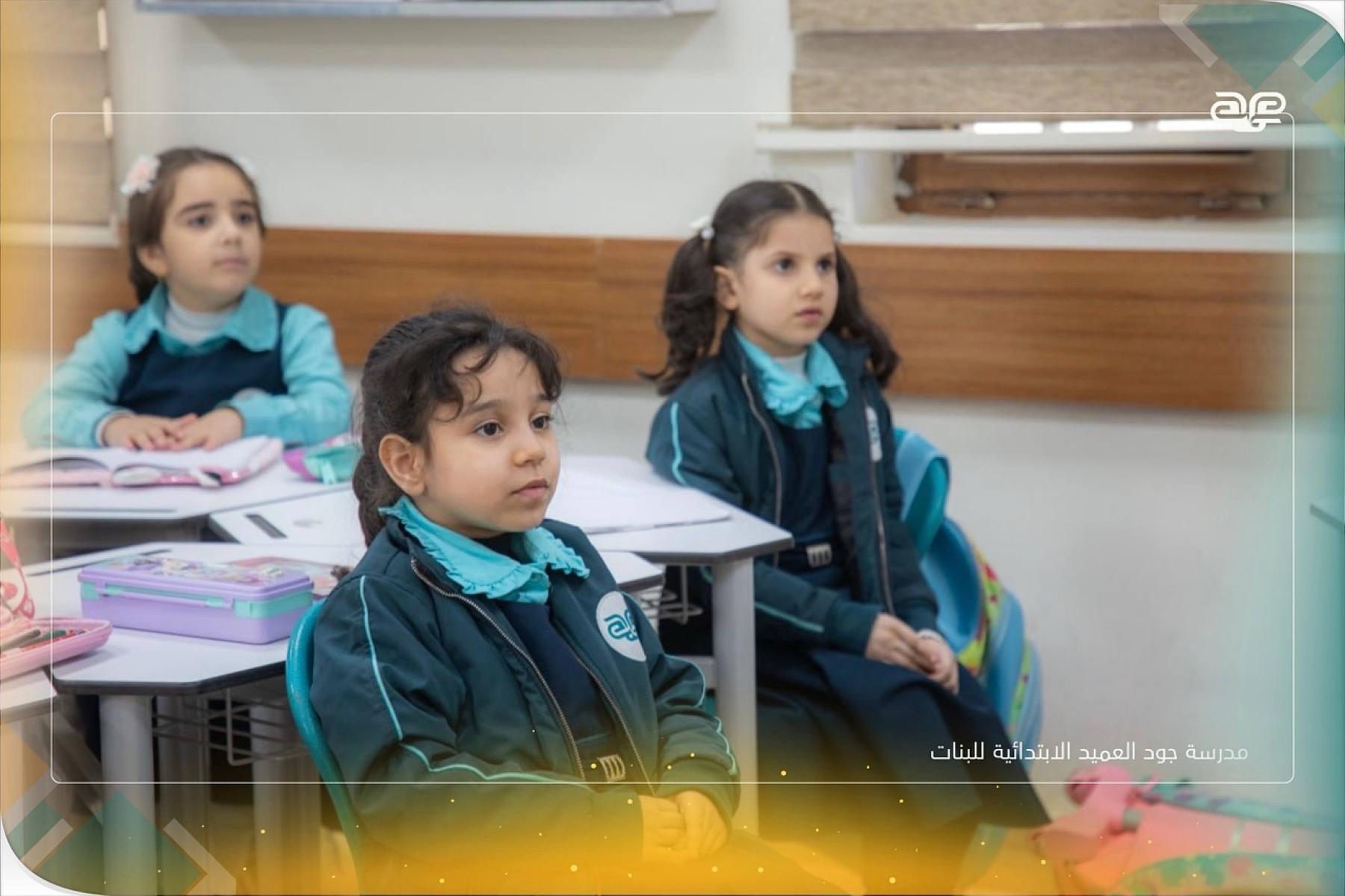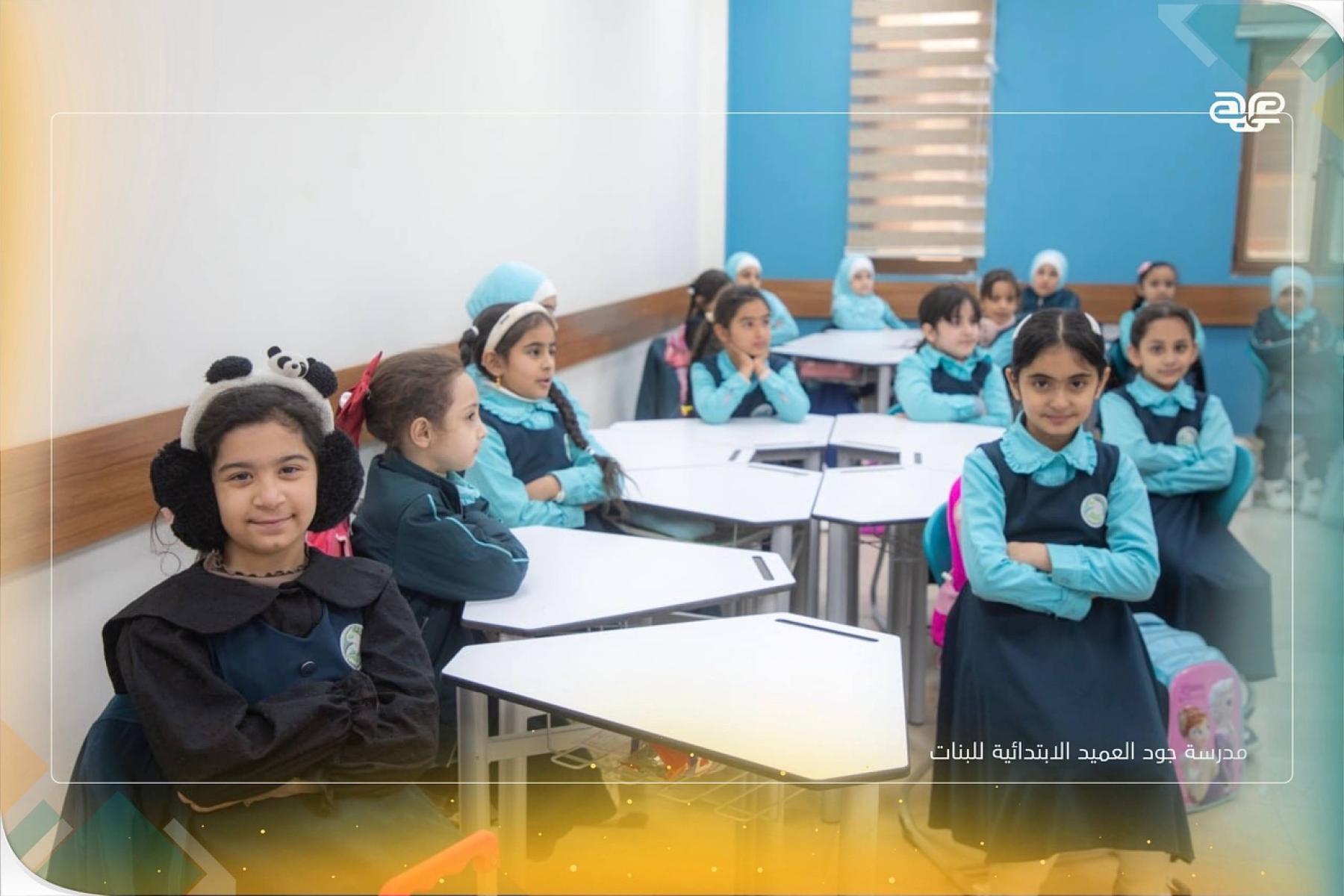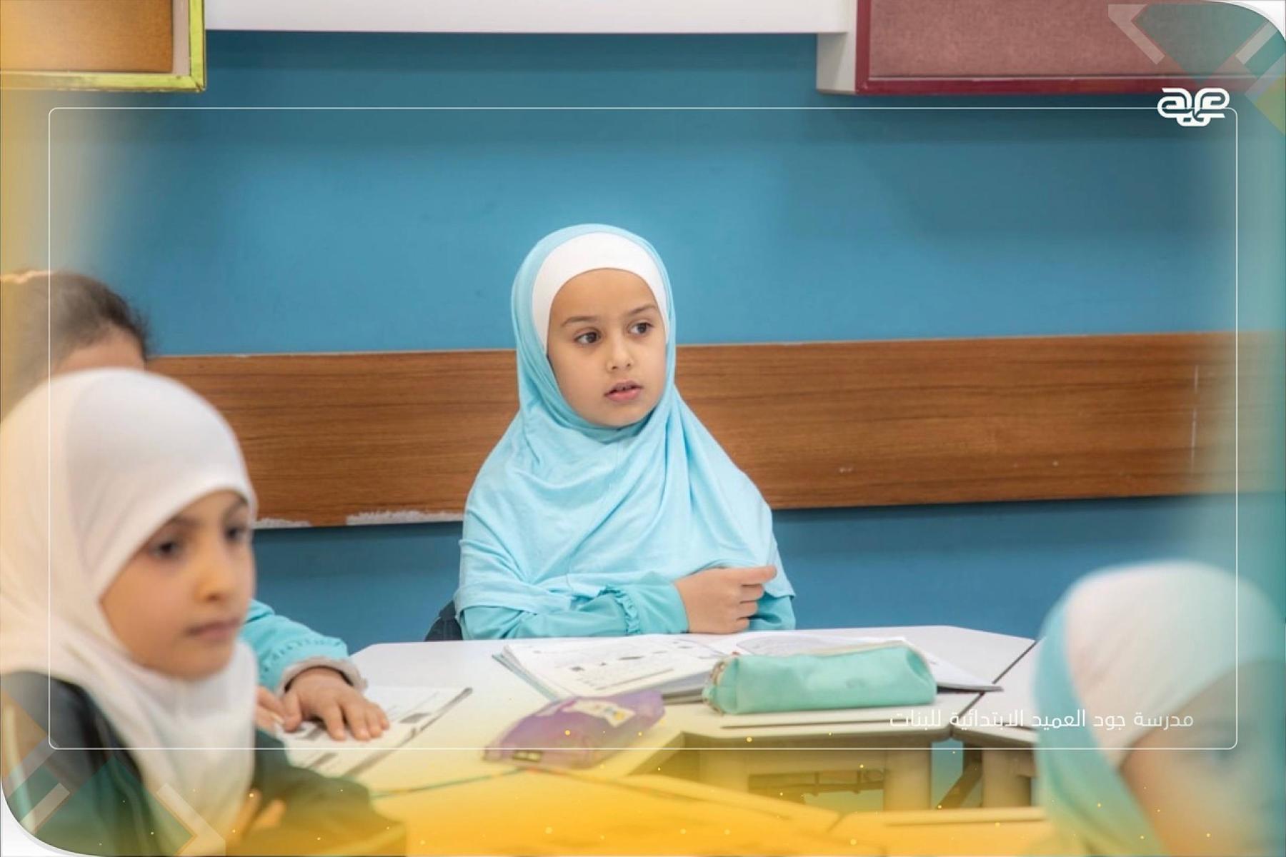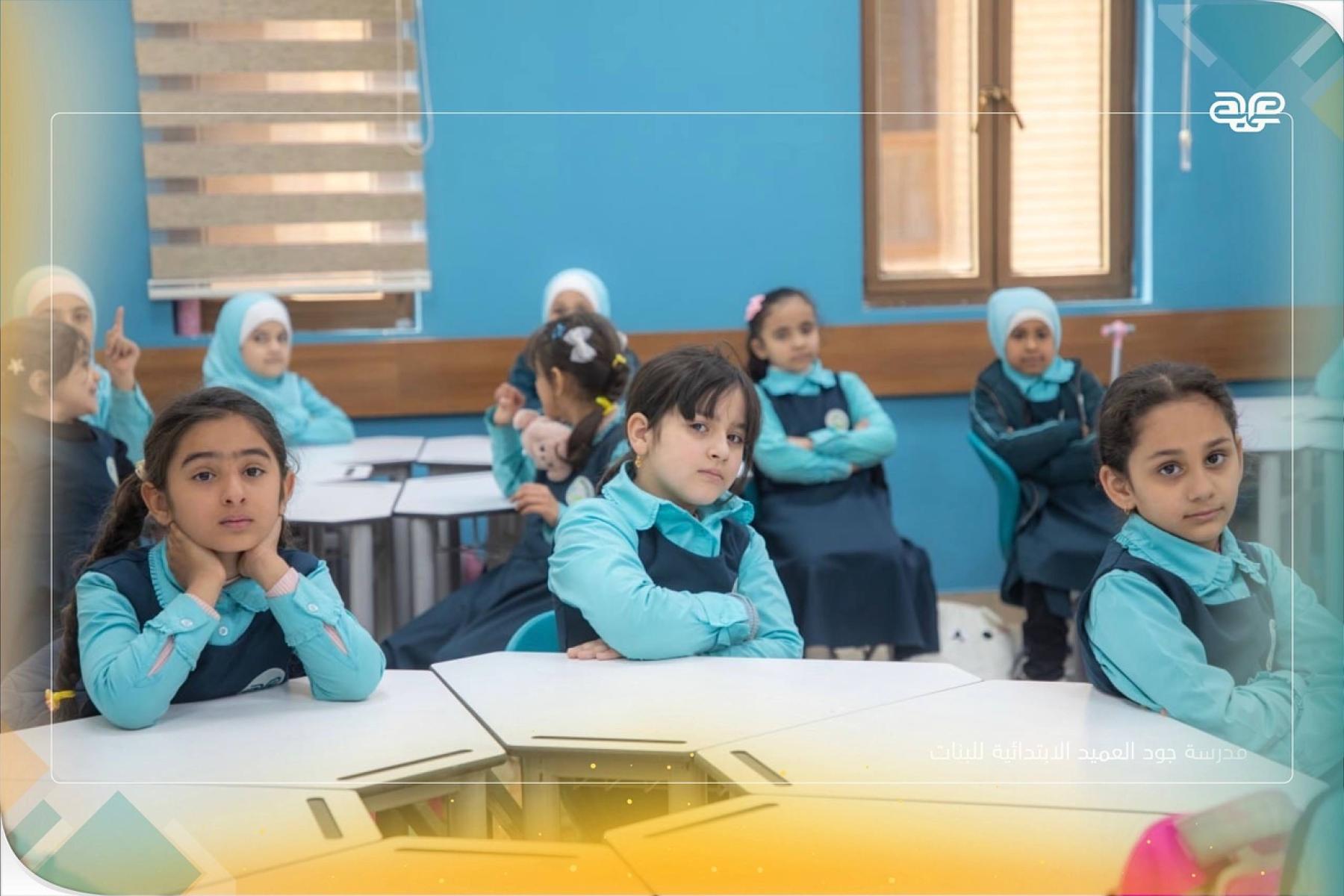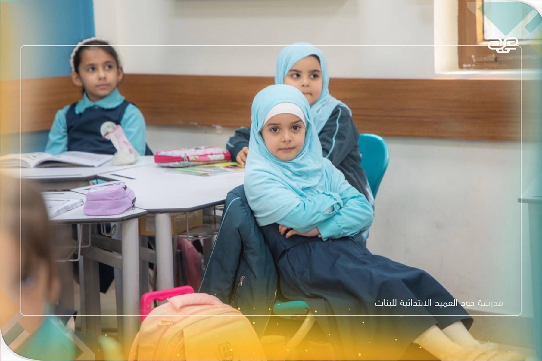 متعلمات مدرسة جود العميد الابتدائية للبنات في إطلالة تعليمية مميزة تجمع بين العلم والوعي، في يومٍ دراسي يفيض بالبسمة والنجاح وروح المثابرة.