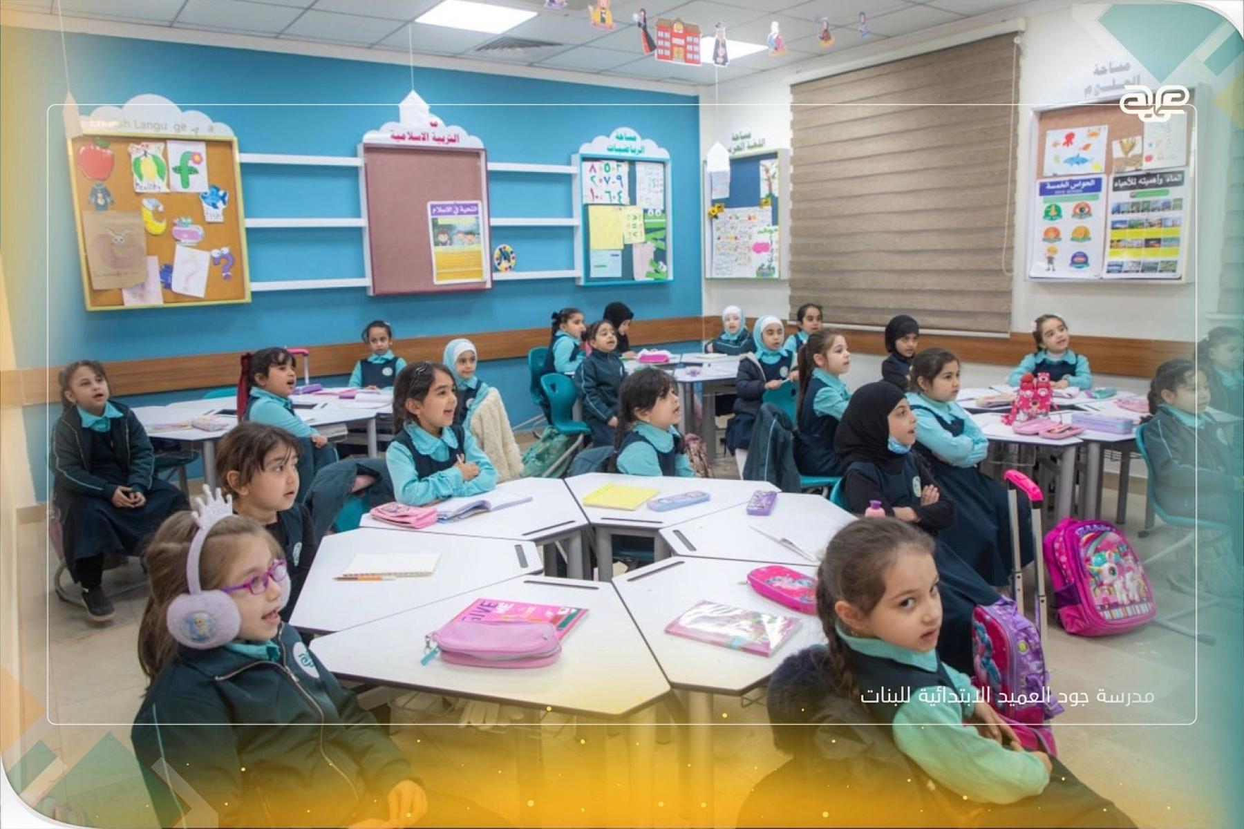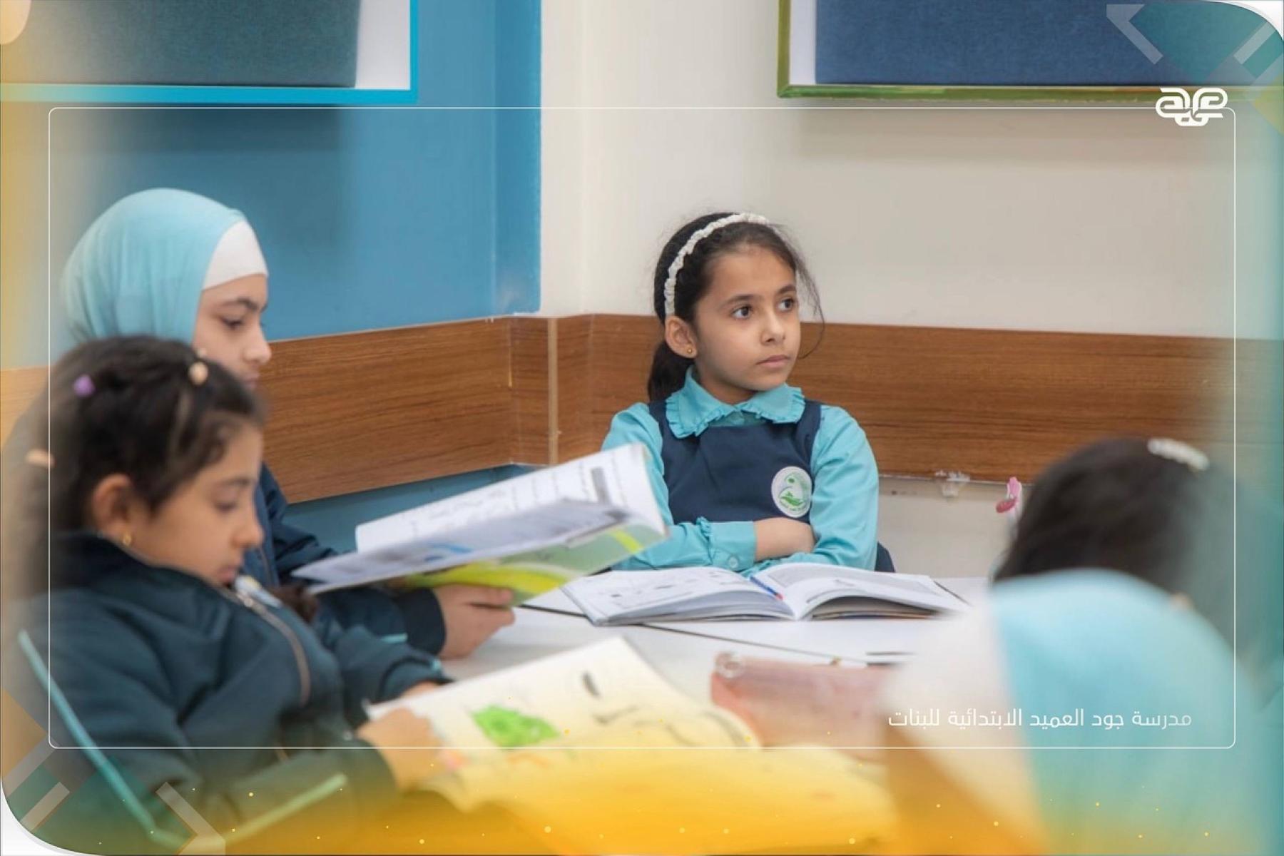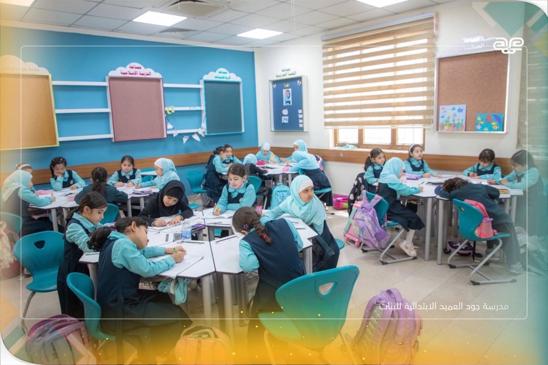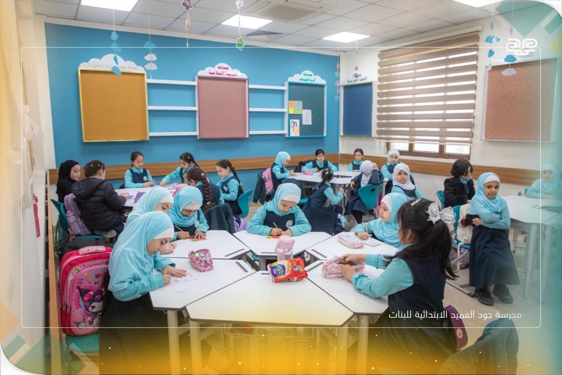 متعلمات مدرسة جود العميد الابتدائية للبنات في إطلالة تعليمية مميزة تجمع بين العلم والوعي، في يومٍ دراسي يفيض بالبسمة والنجاح وروح المثابرة.