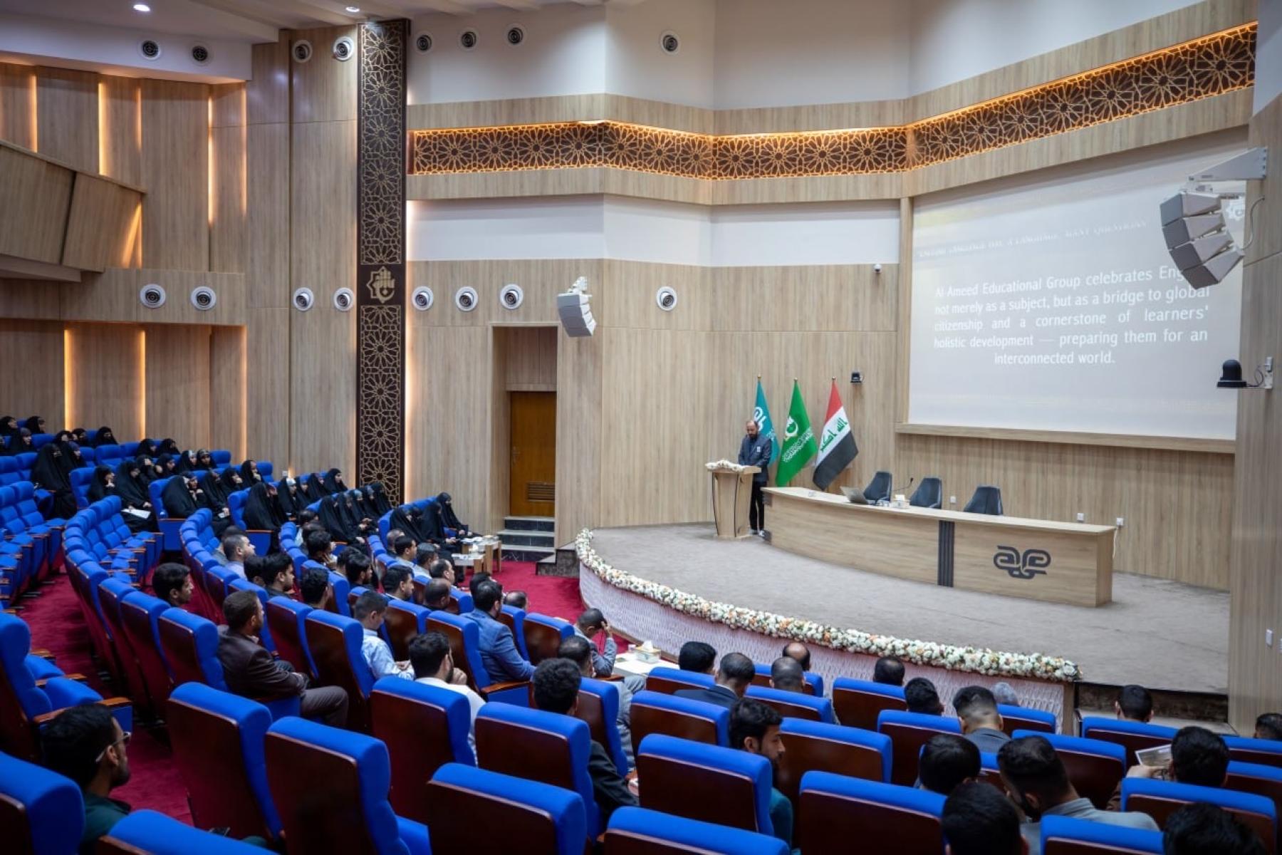 من جانبه، قدّم المدير العام الدكتور حسن داخل محاضرة تناول فيها أهمية اللغة الإنجليزية بوصفها مجالًا حيويًا من مجالات المنهج، مؤكدًا أن تعلم اللغة لا يقتصر على كونها مادة دراسية، بل هو أداة أساسية للتعلّم والانفتاح على العالم، ومواكبة التطورات العلمية والتقنية.