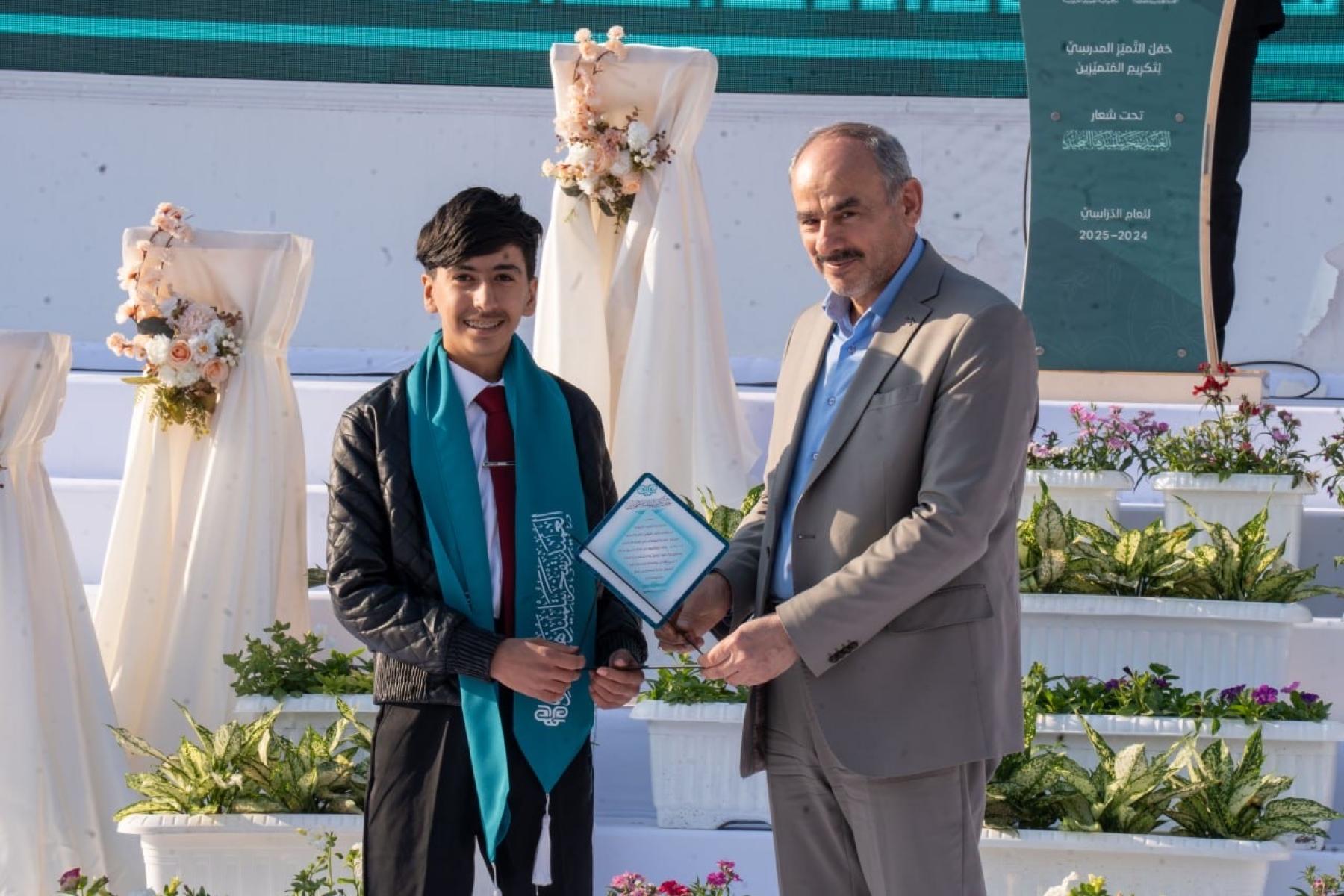 وفي ختام الحفل، جرى تكريم الملاكات التربوية والتعليمية المتميّزة، فضلًا عن المتعلّمين والمتعلّمات الحاصلين على معدلاتٍ عالية، تثمينًا لجهودهم المتميّزة خلال العام الدراسي، وتشجيعًا لهم على مواصلة مسيرة العطاء والنجاح، وترسيخًا لثقافة التميّز بوصفها قيمةً تربويةً أصيلة تسهم في الارتقاء بالعملية التعليمية وتعزيز روح المنافسة الإيجابية.